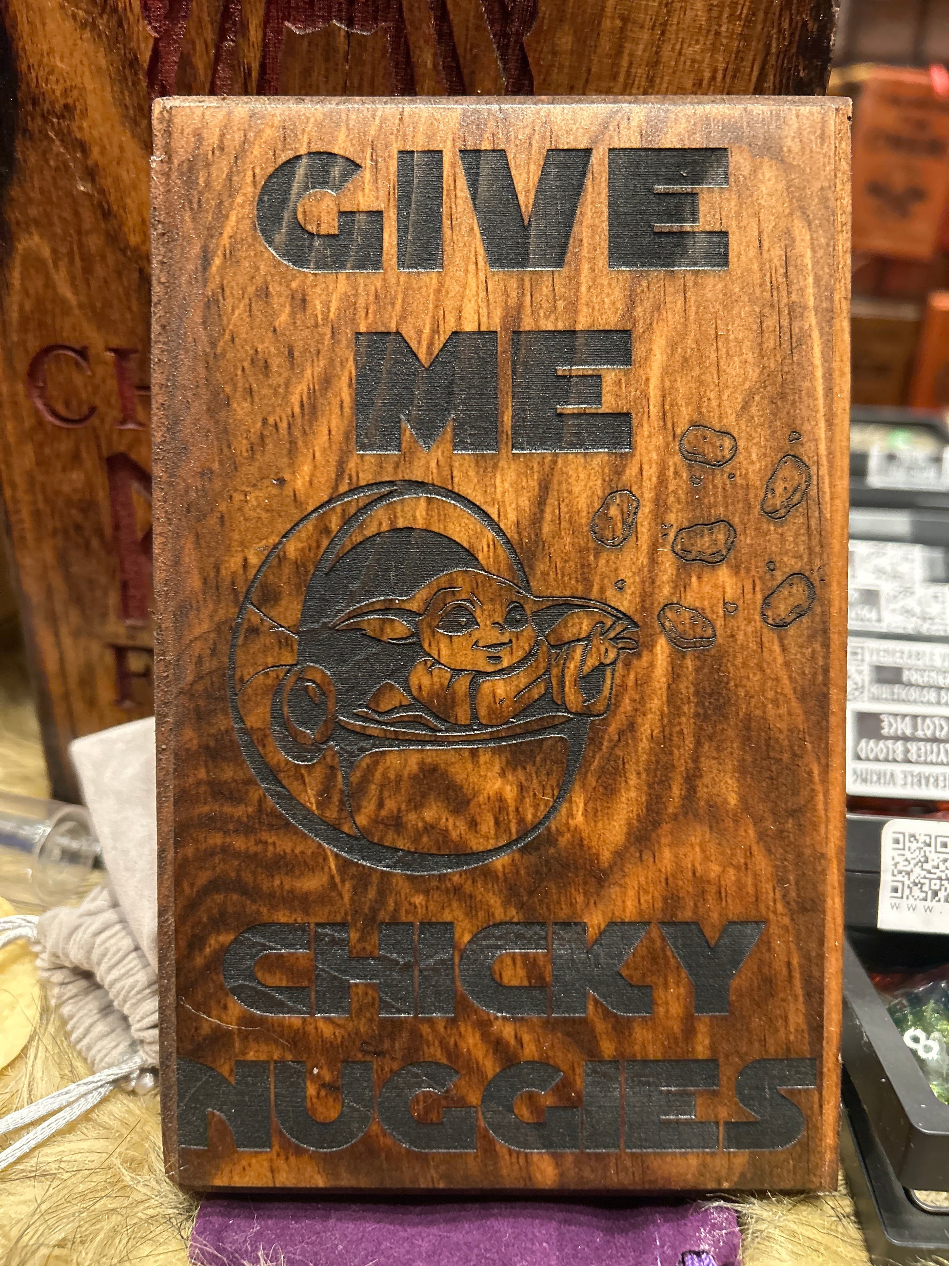 Don’t make him use the force on your weak minded @ss! You can’t expect to live on live amphibious meat all the time. Show your support of a balanced diet! Grogu likes the ones shaped like dinosaurs best! Appx 5.5x12