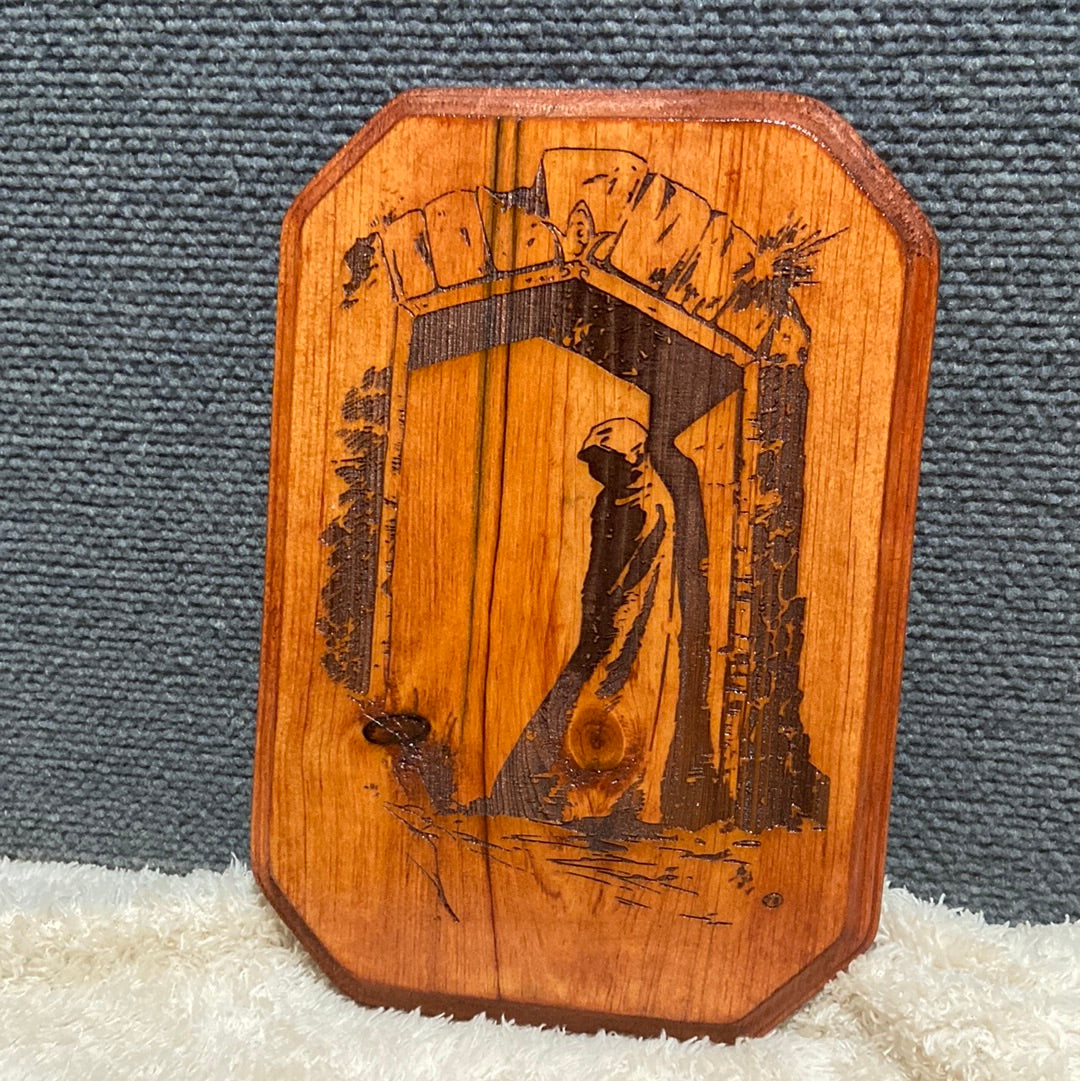 Old school RPG style artwork on solid wood. Approx 7x9