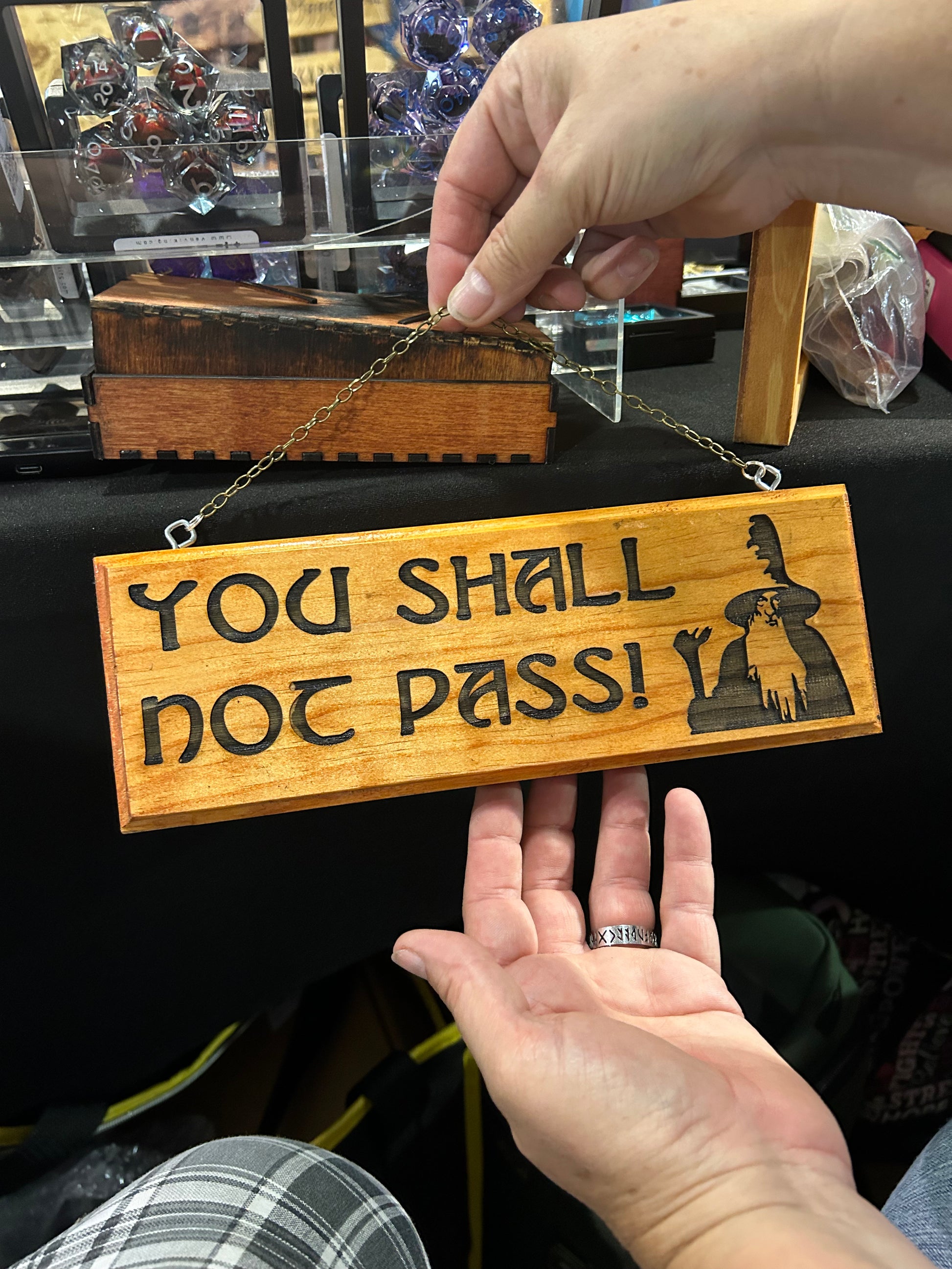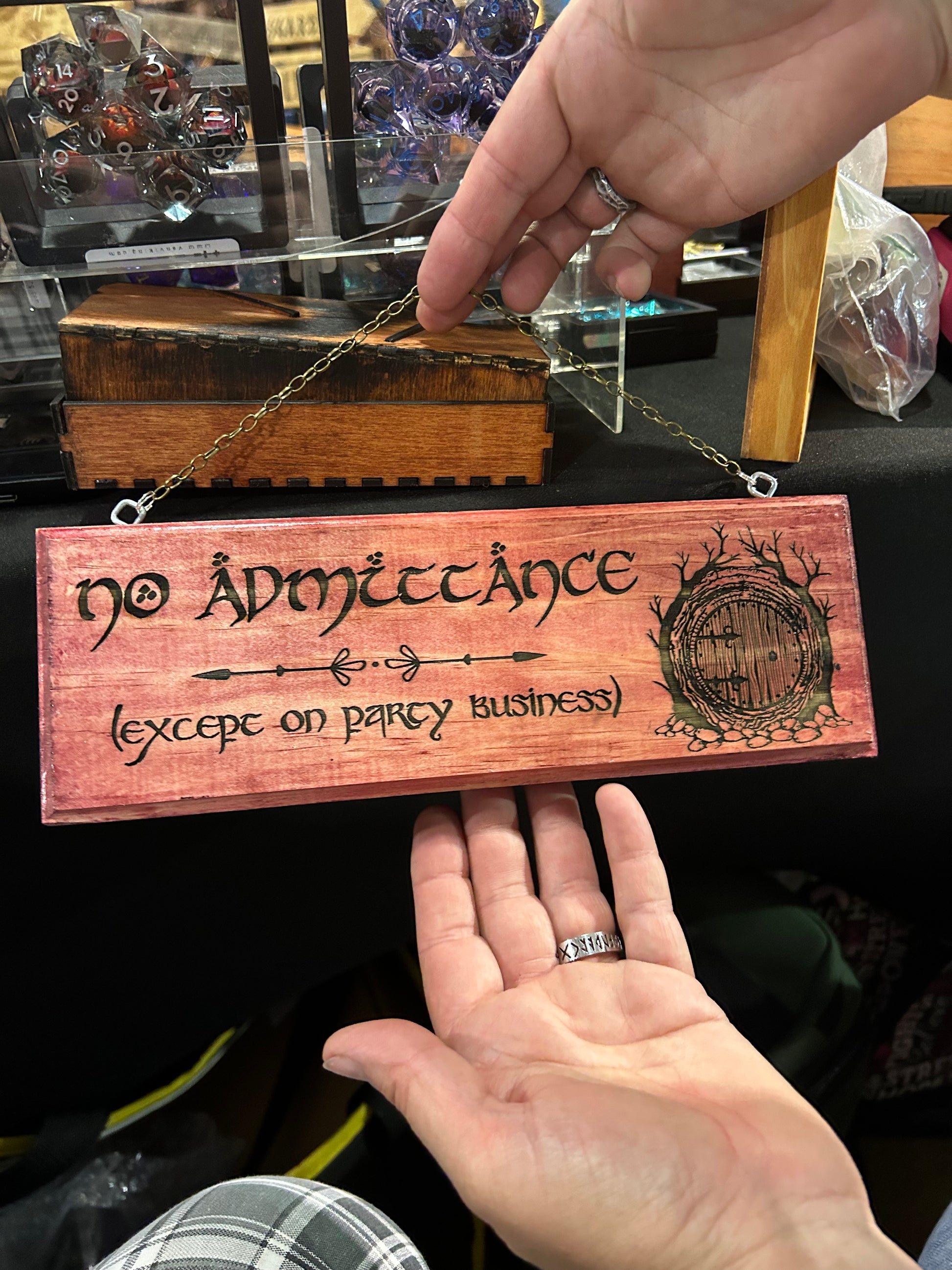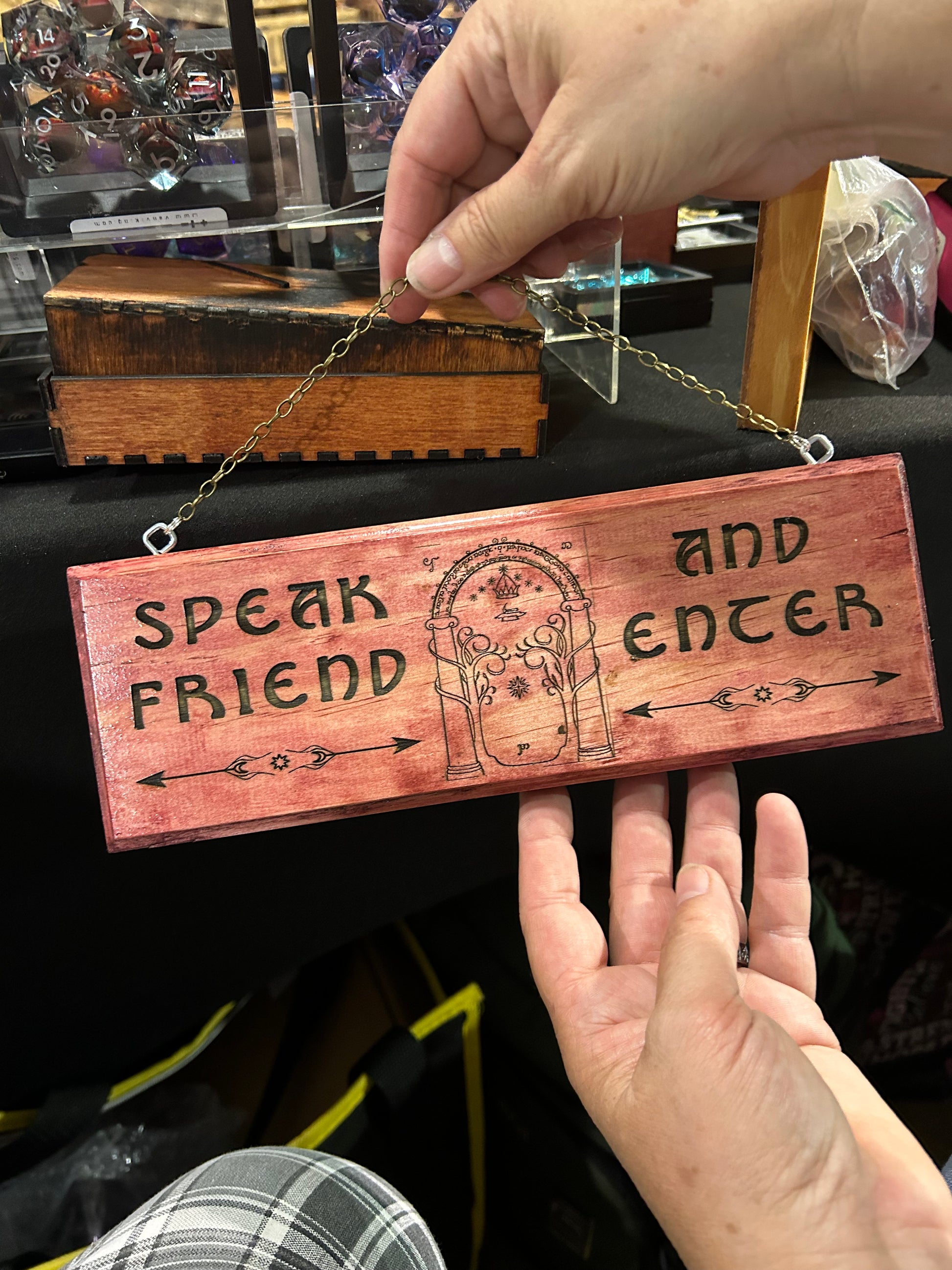 Enhance your home decor with these Speak Friend Double hangers inspired by Tolkien's iconic works. Featuring the timeless phrase "Speak Friend and Enter" on one side and "You Shall Not Pass!" or "No Admittance Except on Party Business" on the other, these double-sided hangers are perfect for any Lord of the Rings or The Hobbit fan. Add a touch of fandom to your front door with these cool hangers.