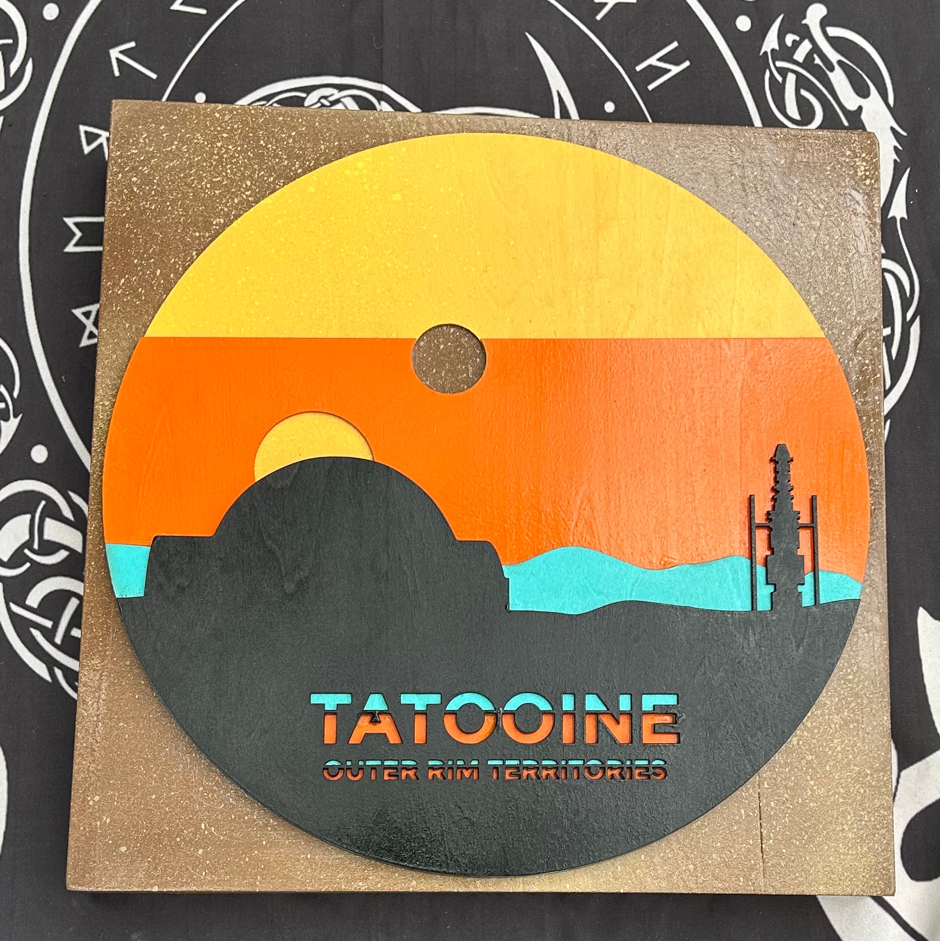 Beautiful 3D layered image of legendary tatooine! Make your fandom known with this gorgeous one of a kind piece.