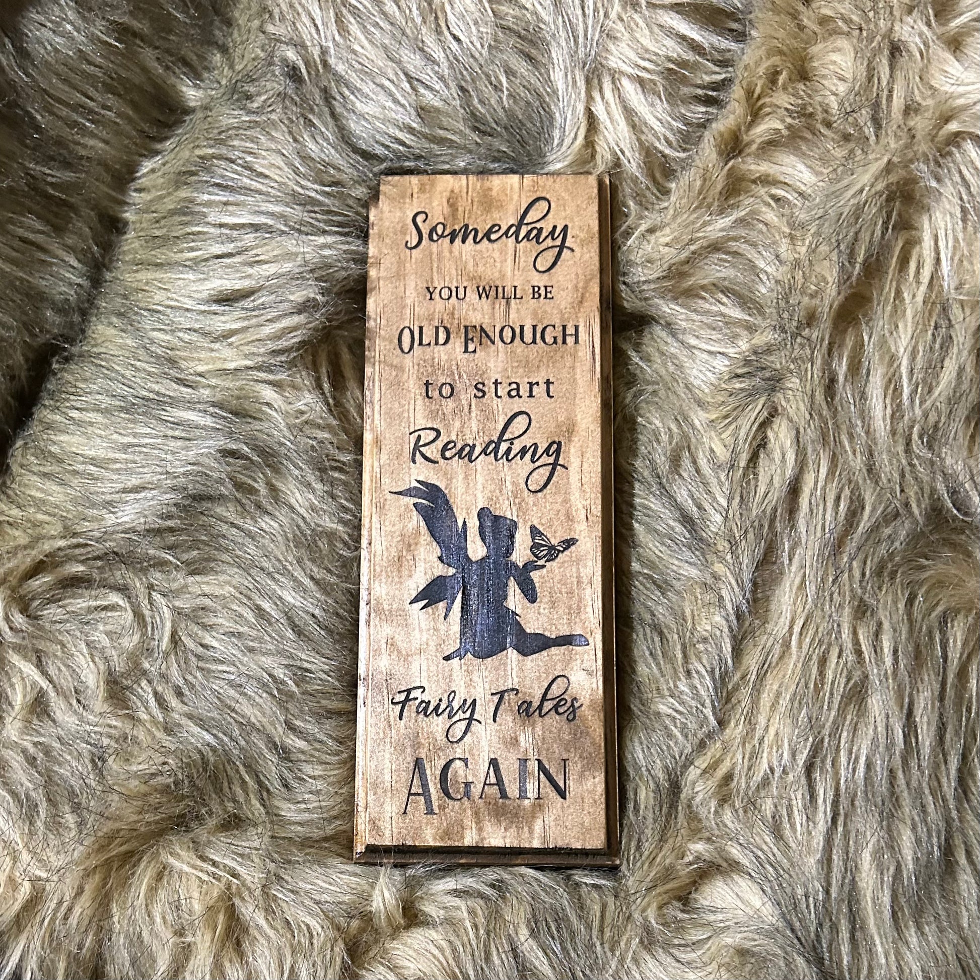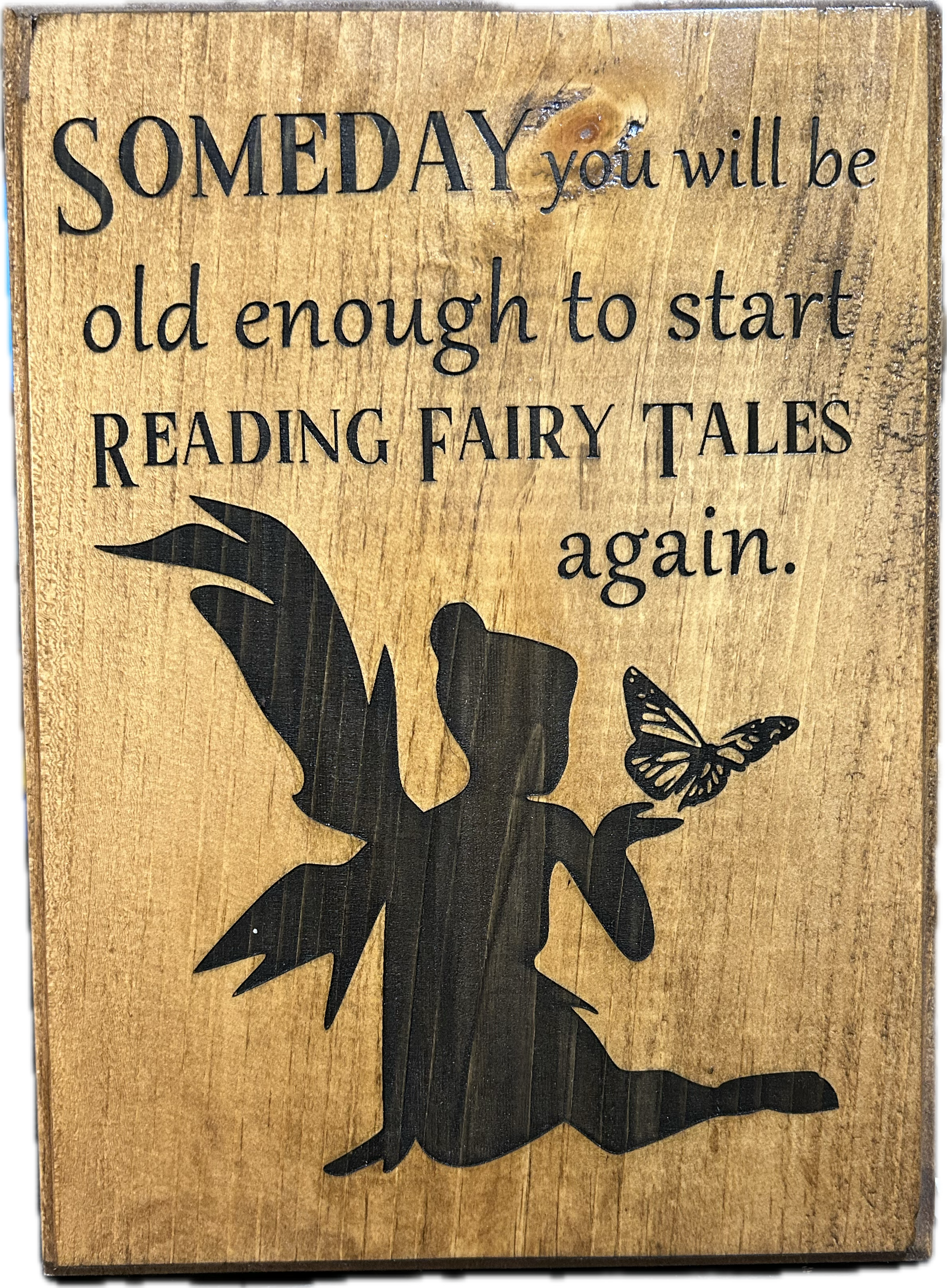 This adorable quote from C.S. Lewis will be welcomed in any home where imagination is never in short supply. Appx 9x5 and available in Barnwood or Light Walnut finishes.