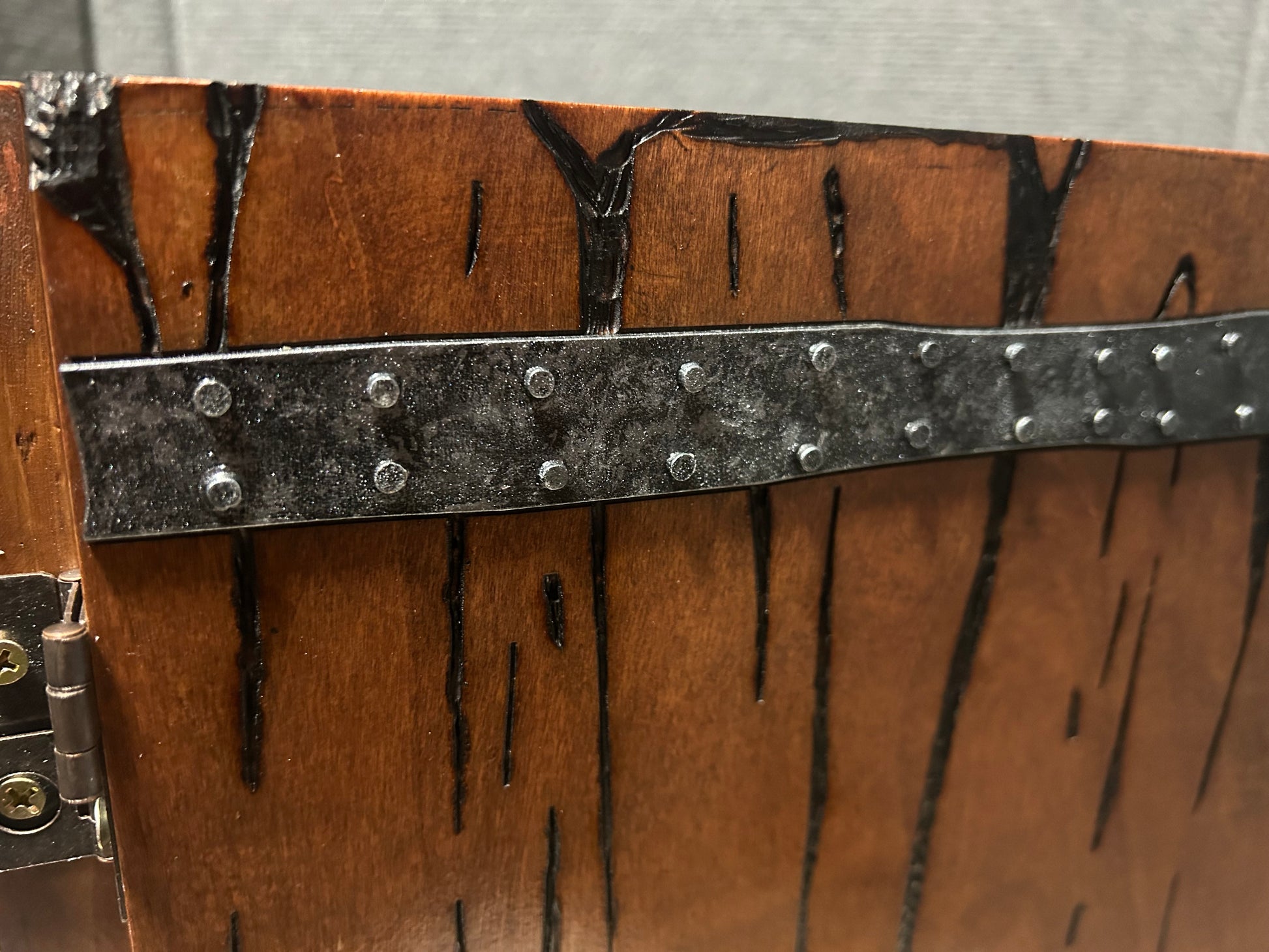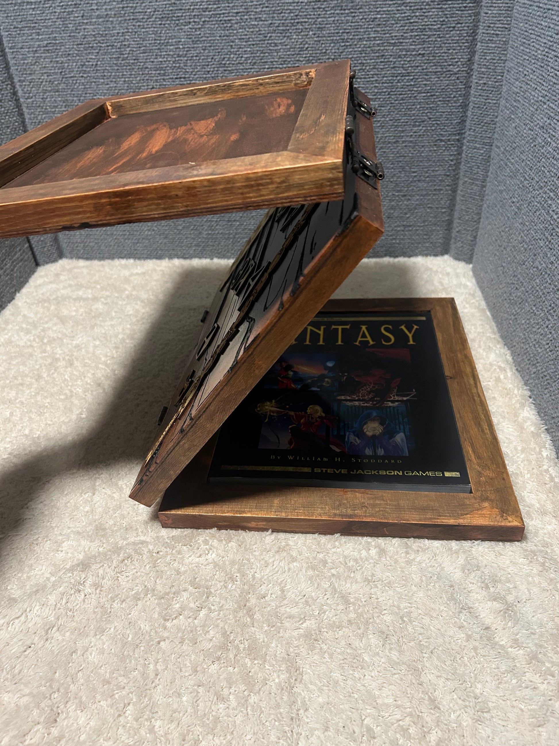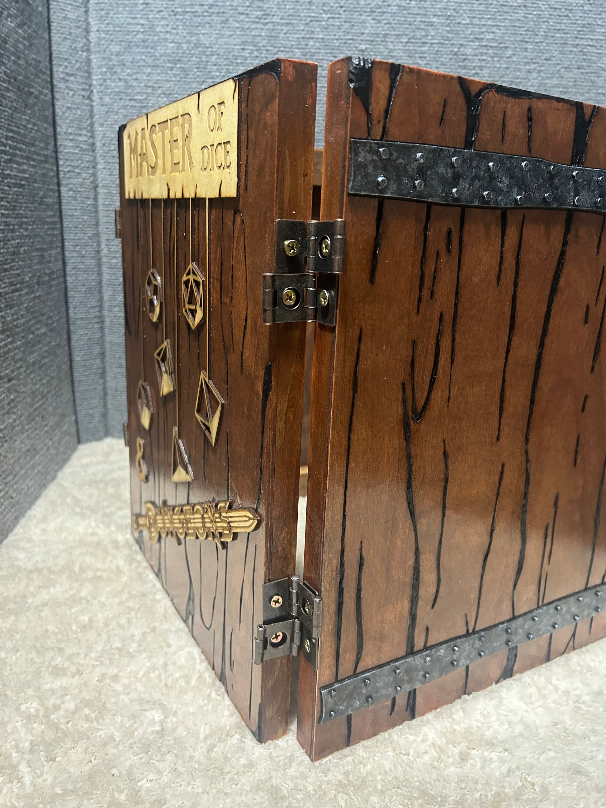 The GM screen is made from wood, each with a cool design and given a badass finish. We try to keep several styles to choose from but often cannot. ? (they go quickly).