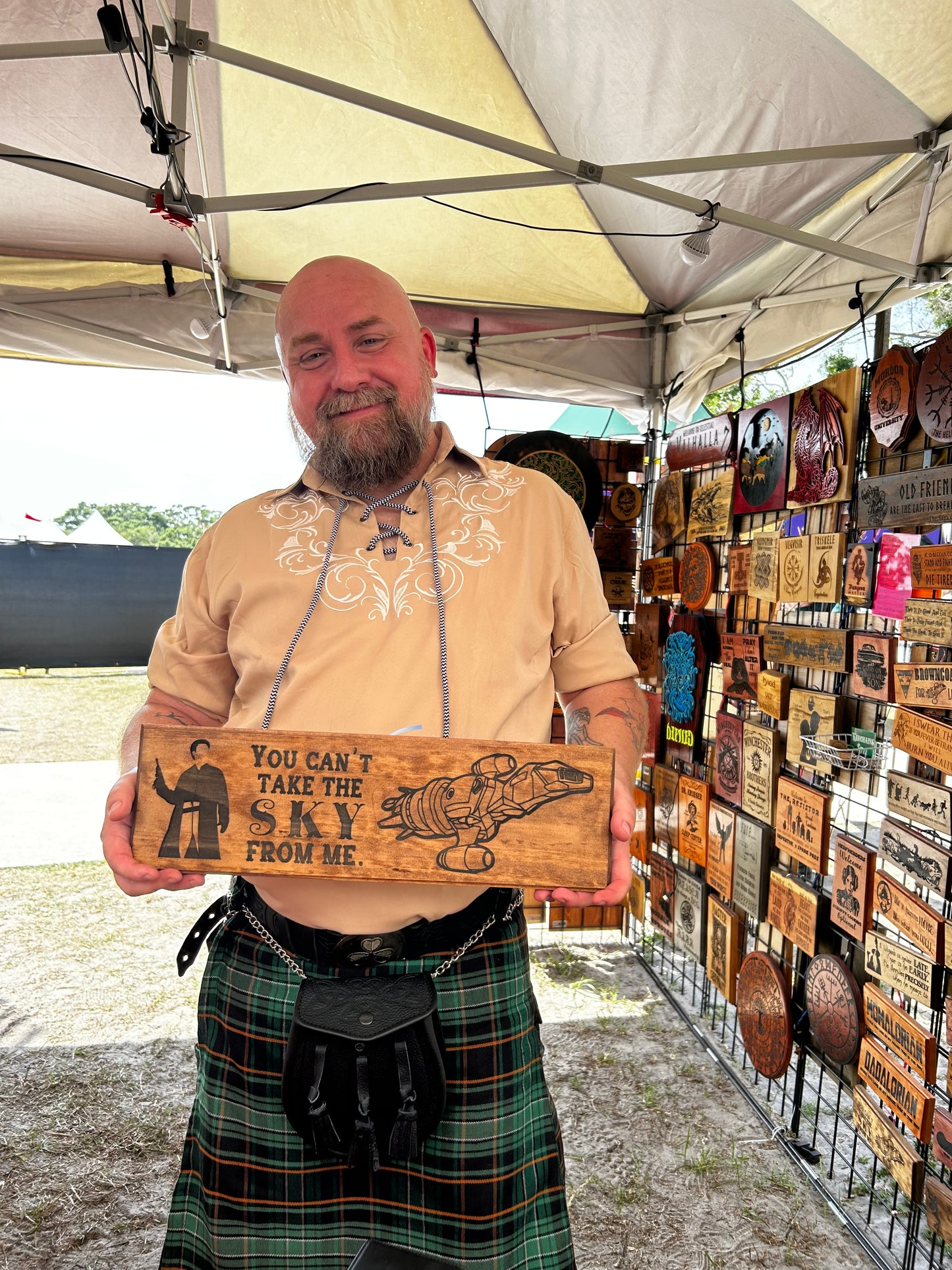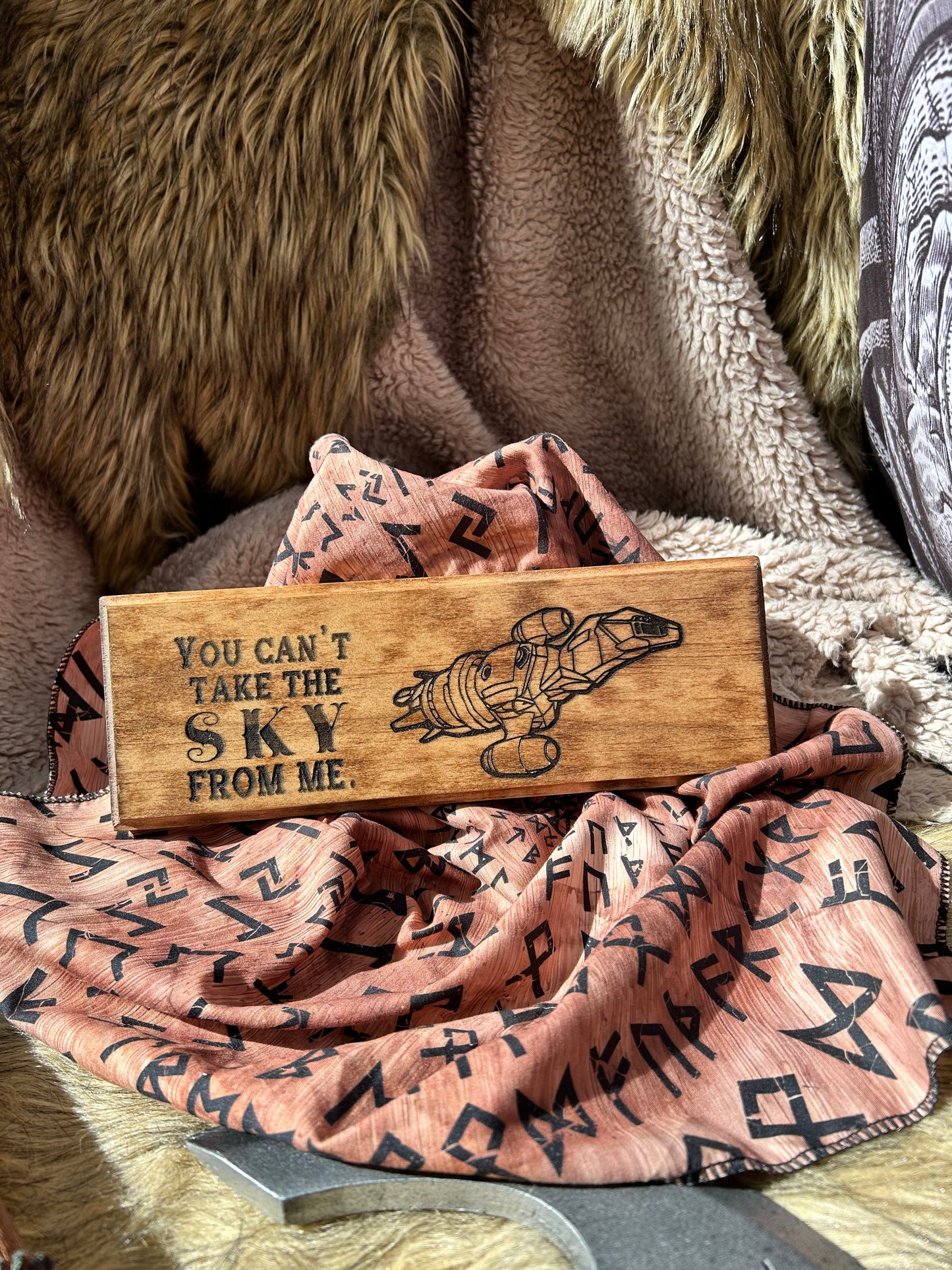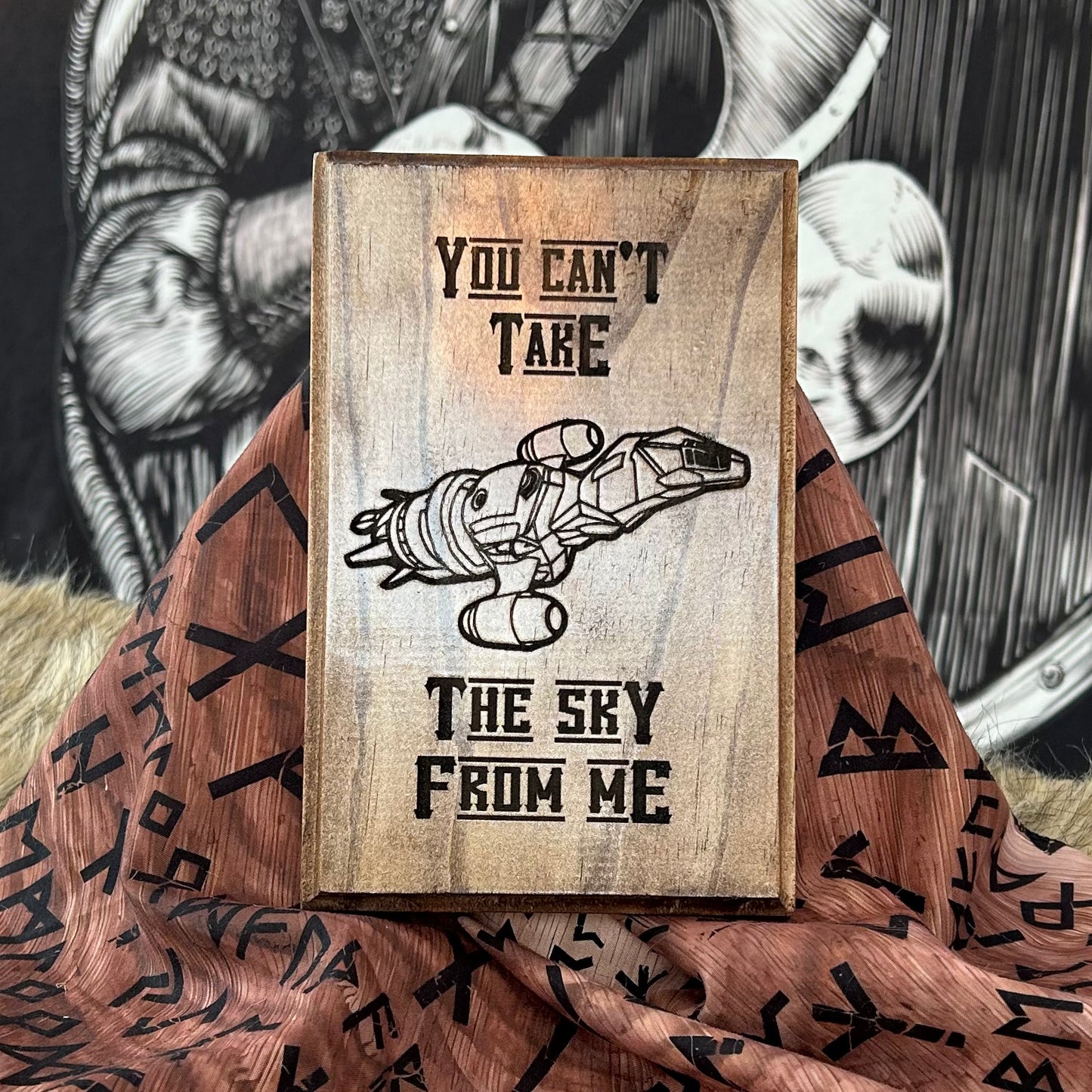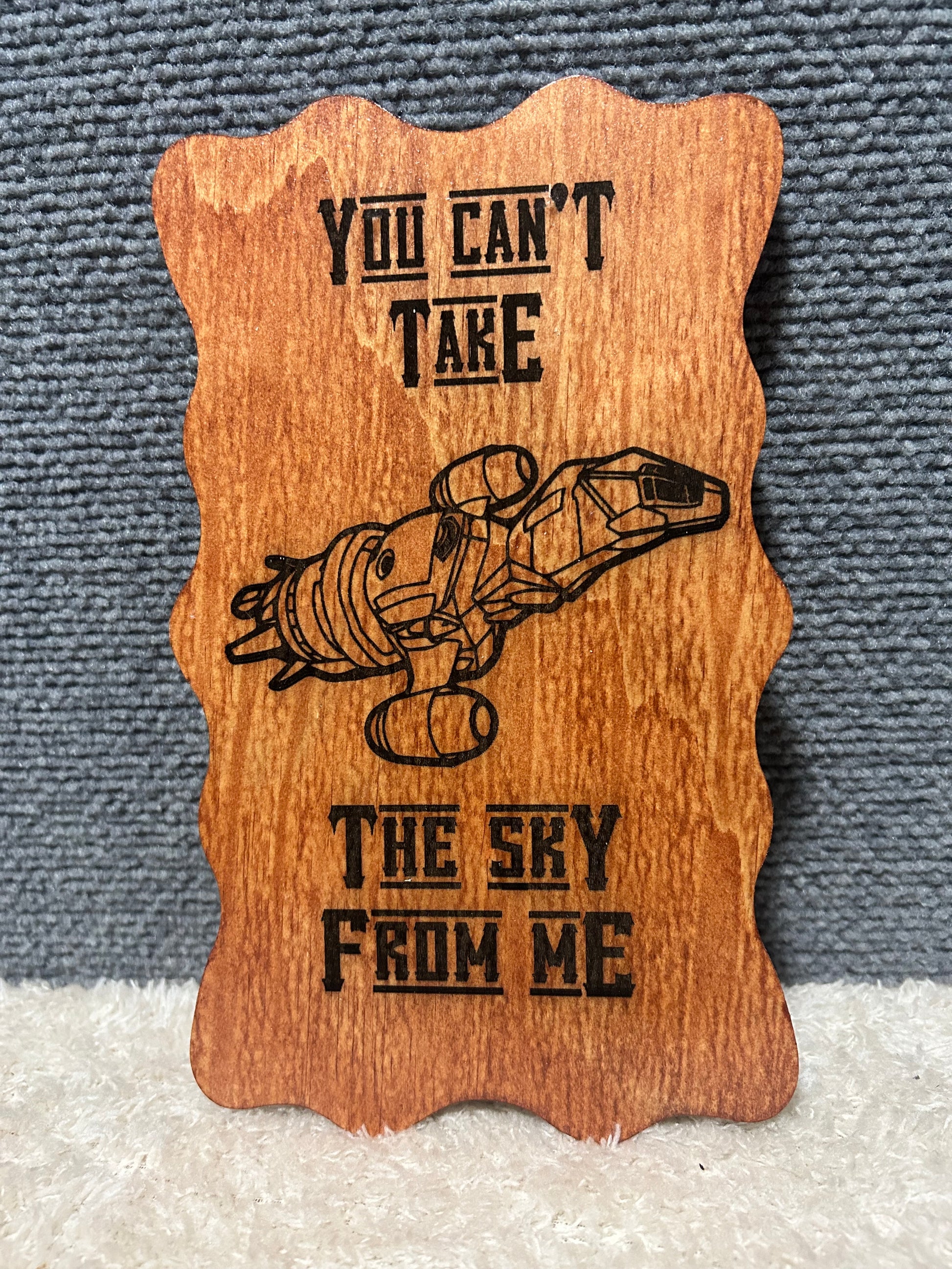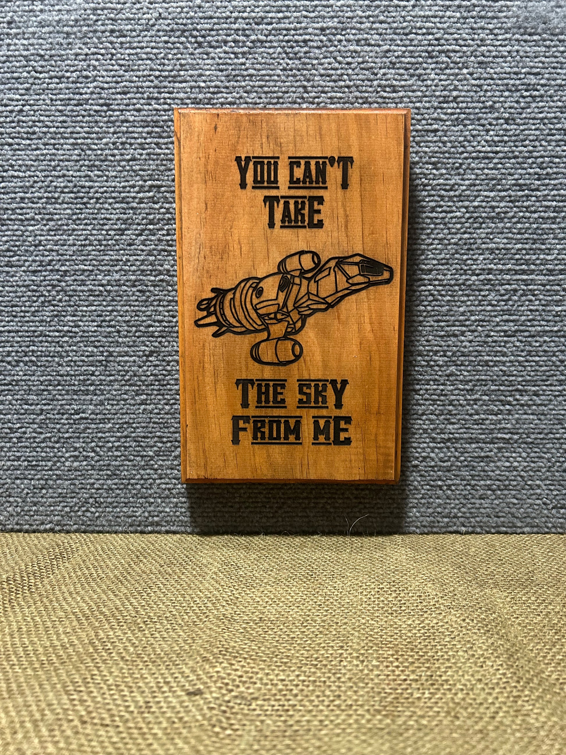 Firefly wall art featuring the classic Firefly-class transport ship, a series of Multipurpose, Mid-Bulk Transport boat designed by Allied Spacecraft Corporation. Of course, the hull and engines are constructed at ASC's shipyard at New Burbank, Osiris, with final outfitting being outsourced to a dozen smaller companies, including the newly formed Firefly Ship Works on Hera.