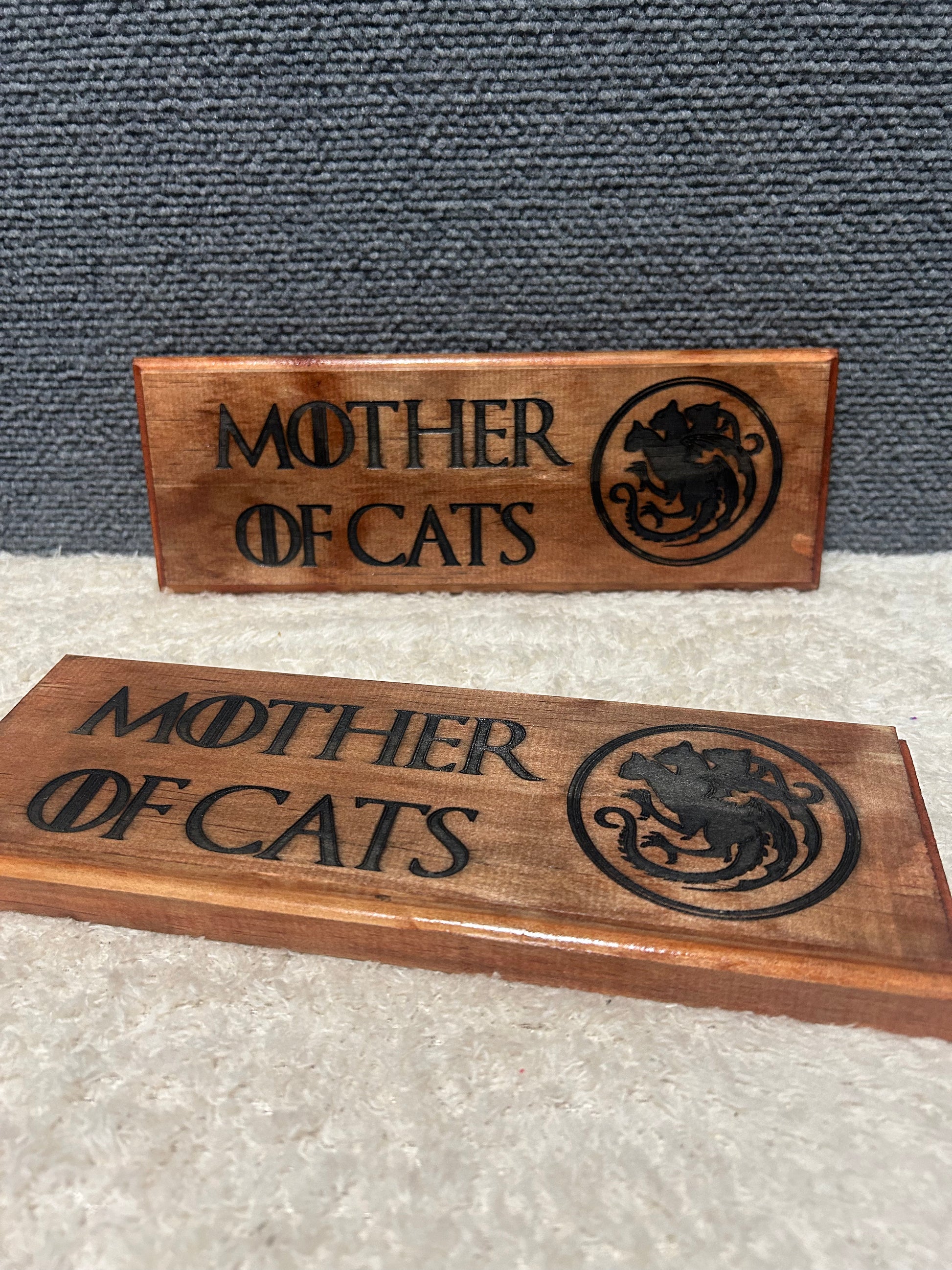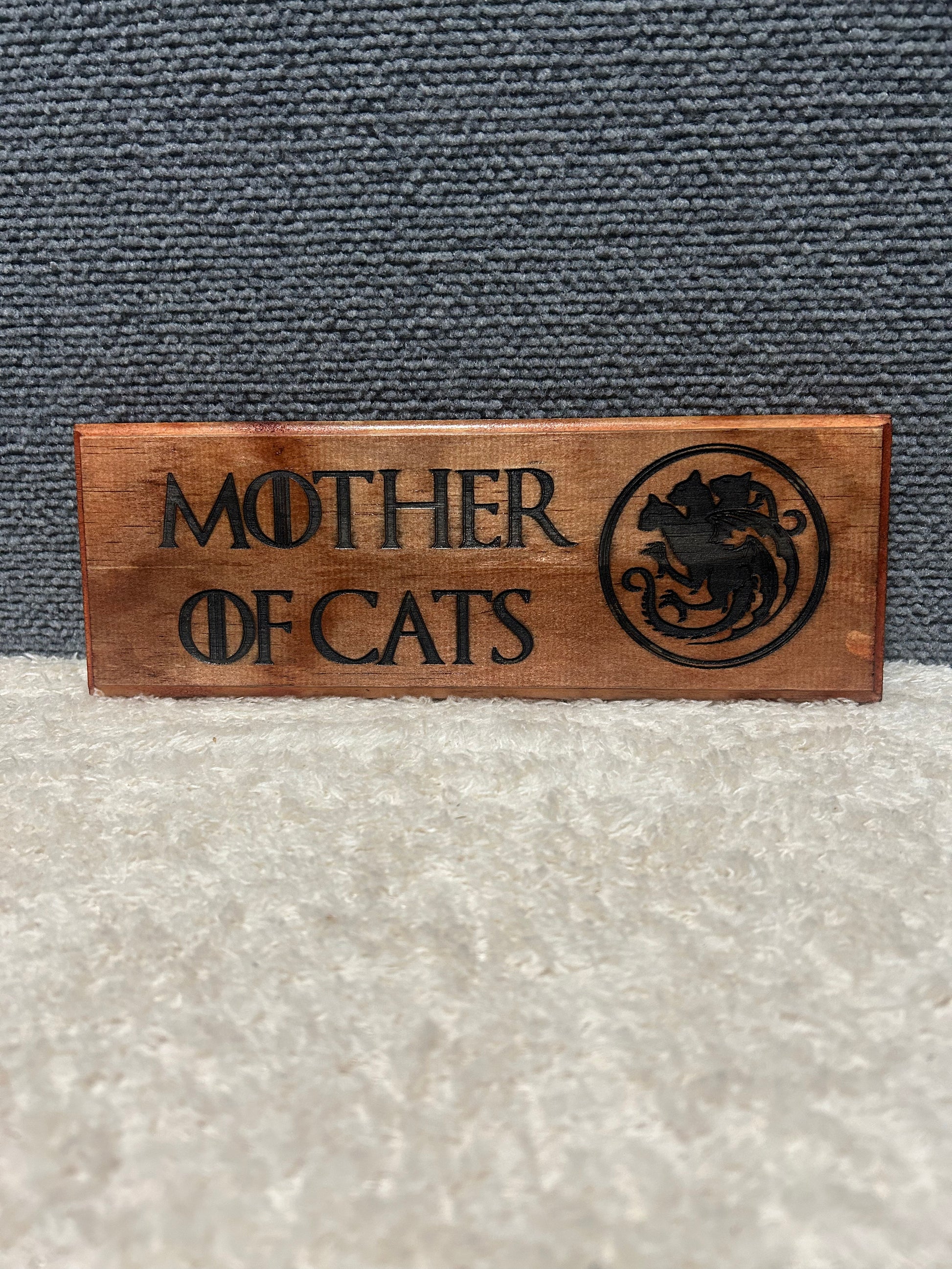A single twist of fate and the legendary and formidable Daenerys Targaryen may have ended up just some old white-haired crazy cat lady. With all due respect for cat owners everywhere, declare yourself Mother of Cats with this walnut finish 5x7 wall art piece.