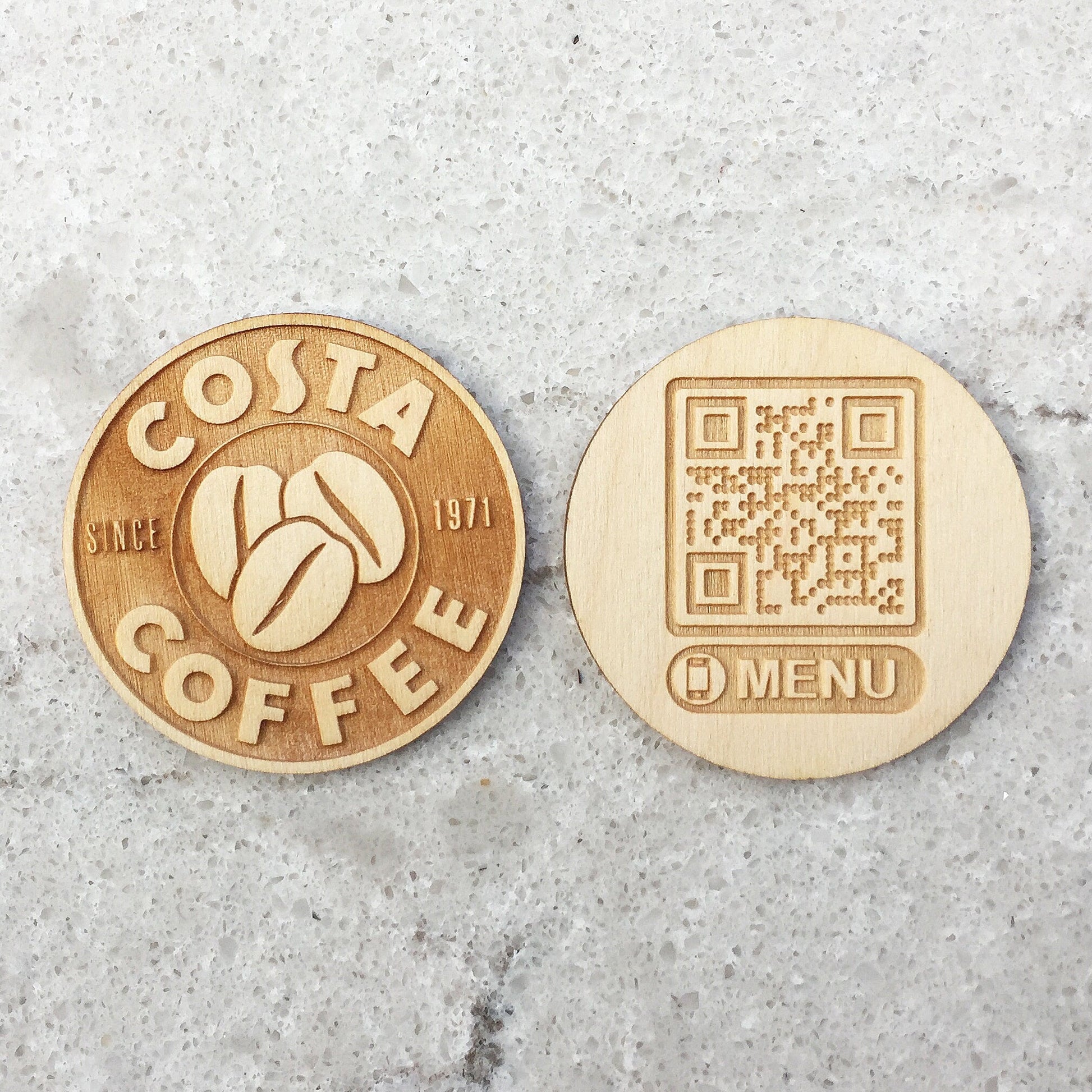 Tokens for use by vendors and businesses. Must provide artwork and only available through prior approval. Front is logo and business name. Back is contact text or QR.