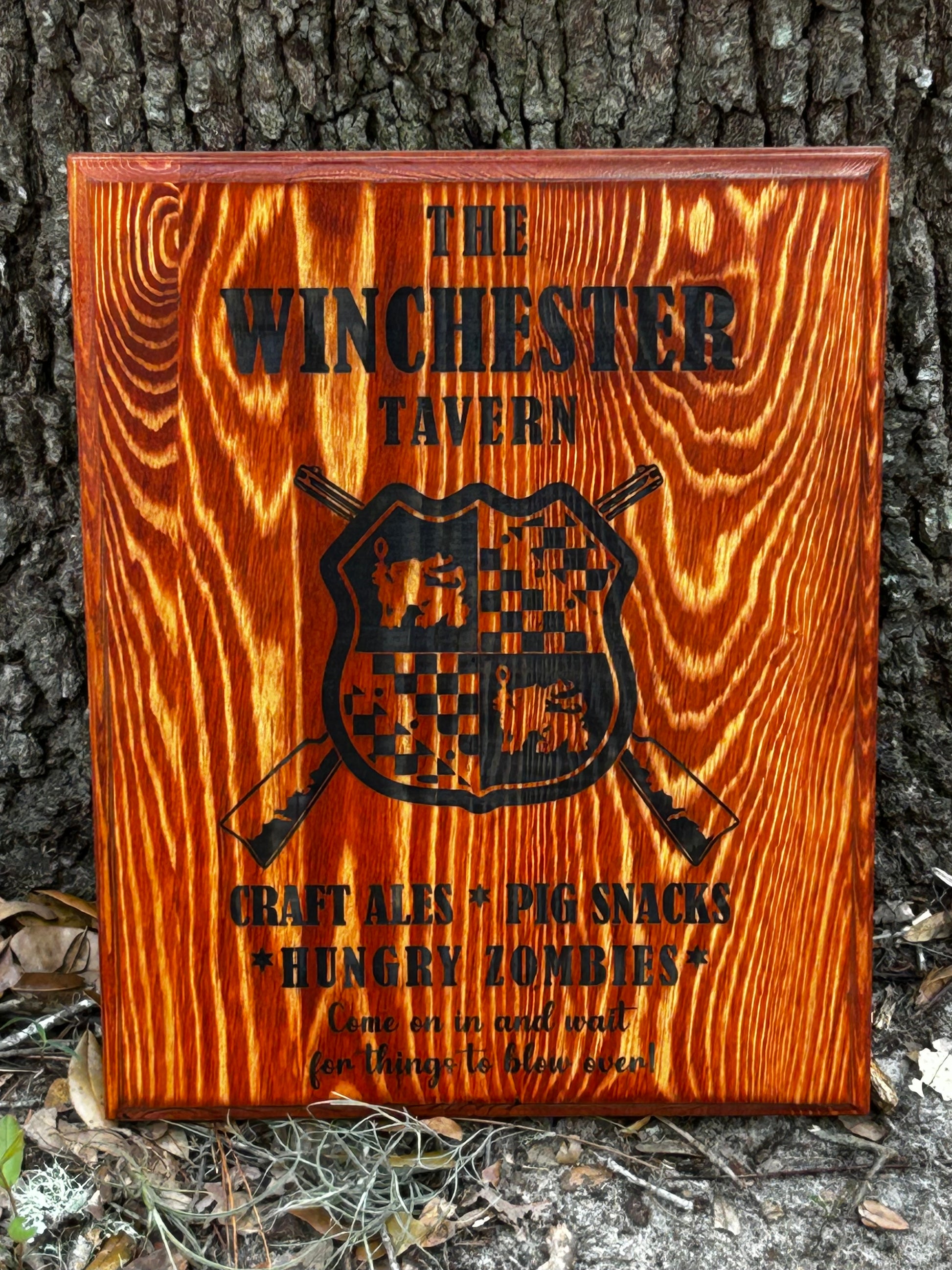 Shaun of the Dead Winchester Sign. Solid wood. “Come on in and wait for things to blow over.” Best. Advice. Ever.