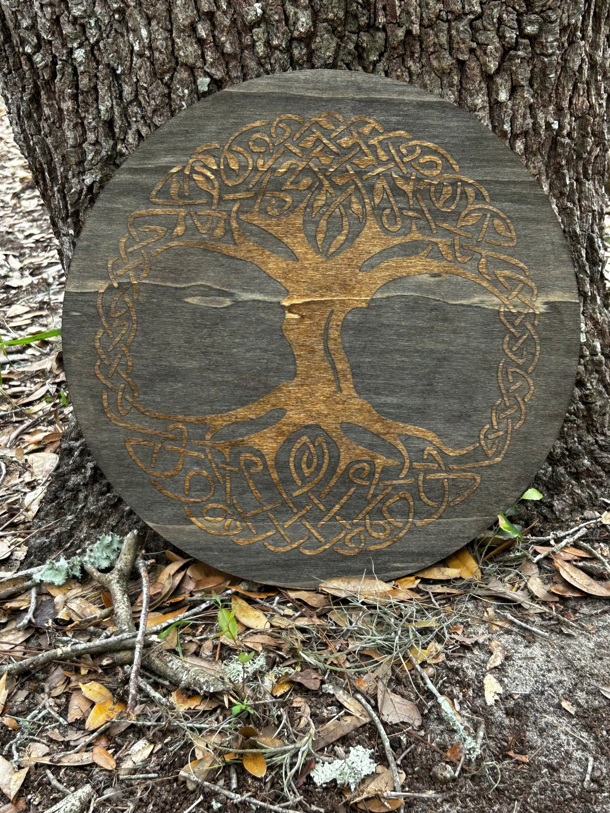 This piece of artwork is often referred to as the World Tree or Tree of Life, and is recognized as a universal symbol across various cultures throughout history. Crafted from wood, this item may vary in size and finish.